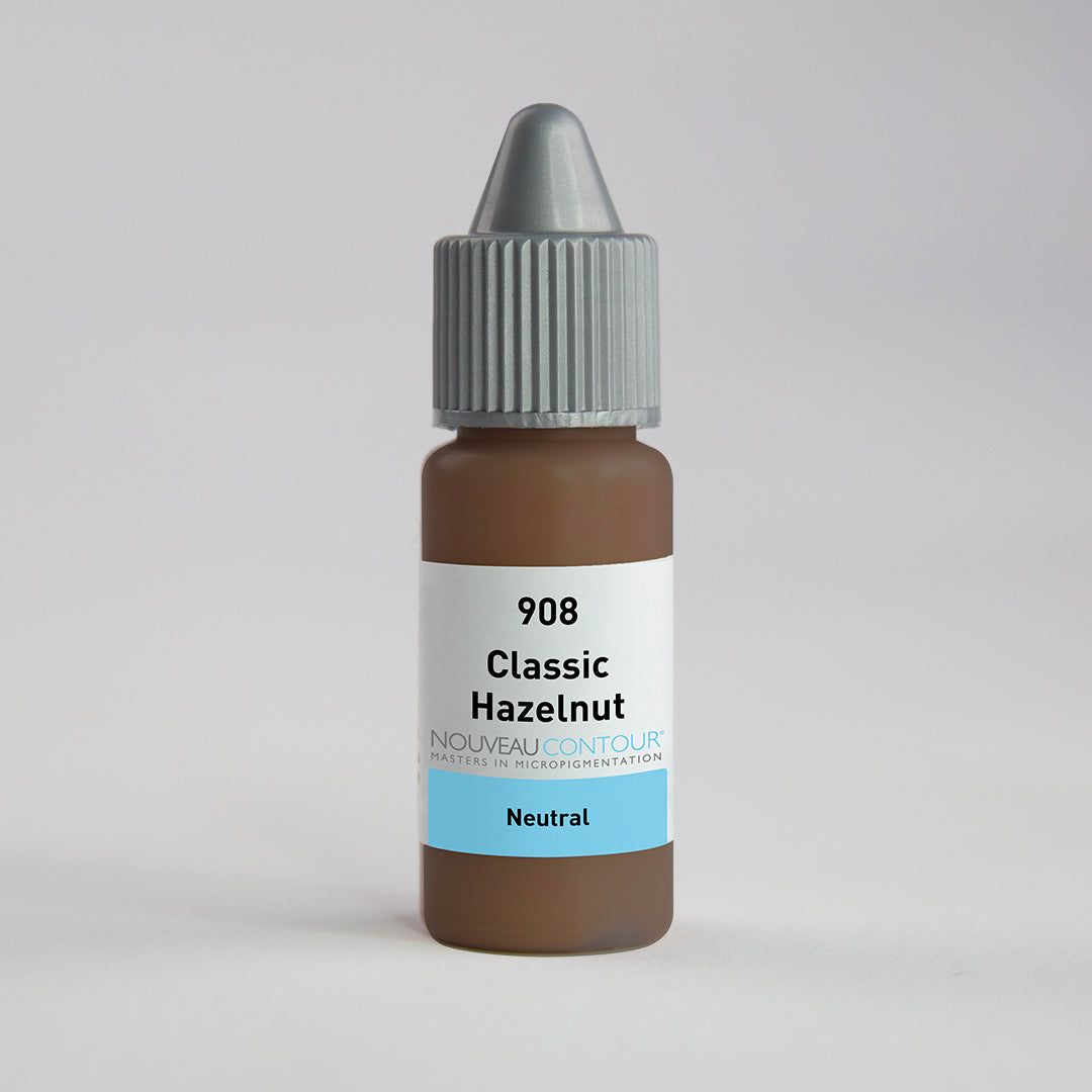 Eyebrow pigment 908 – Classic Hazelnut of Nouveau Contour is suitable for clients with a light to light deeper skin and a neutral undertone. The medium brown pigment is from the new Fusion Plus pigment line. Experience innovation at its best – natural results, minimal touch-ups and true, vibrant colors from apllication to healed results.