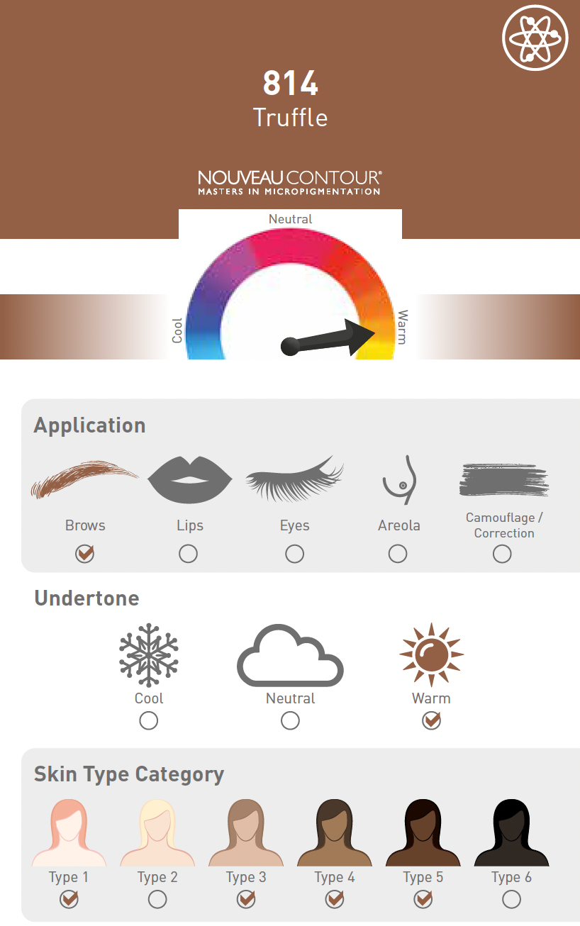 Eyebrow pigment 814 – Truffle has a very light and soft color and is suitable for pigmenting beautiful soft powder brows. The pigment is extremely suitable for clients with red & dark blonde hair with pale skin and brown clients with darker skin.