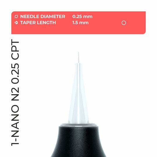 The 1-point Nano – Safety needle allows you- with it’s precision and sharp Taper – to trace clean and fine hairstrokes like no other. The needles recreates the concept of realistic results. The needle travel smooth into & out the skin, without causing any trauma.