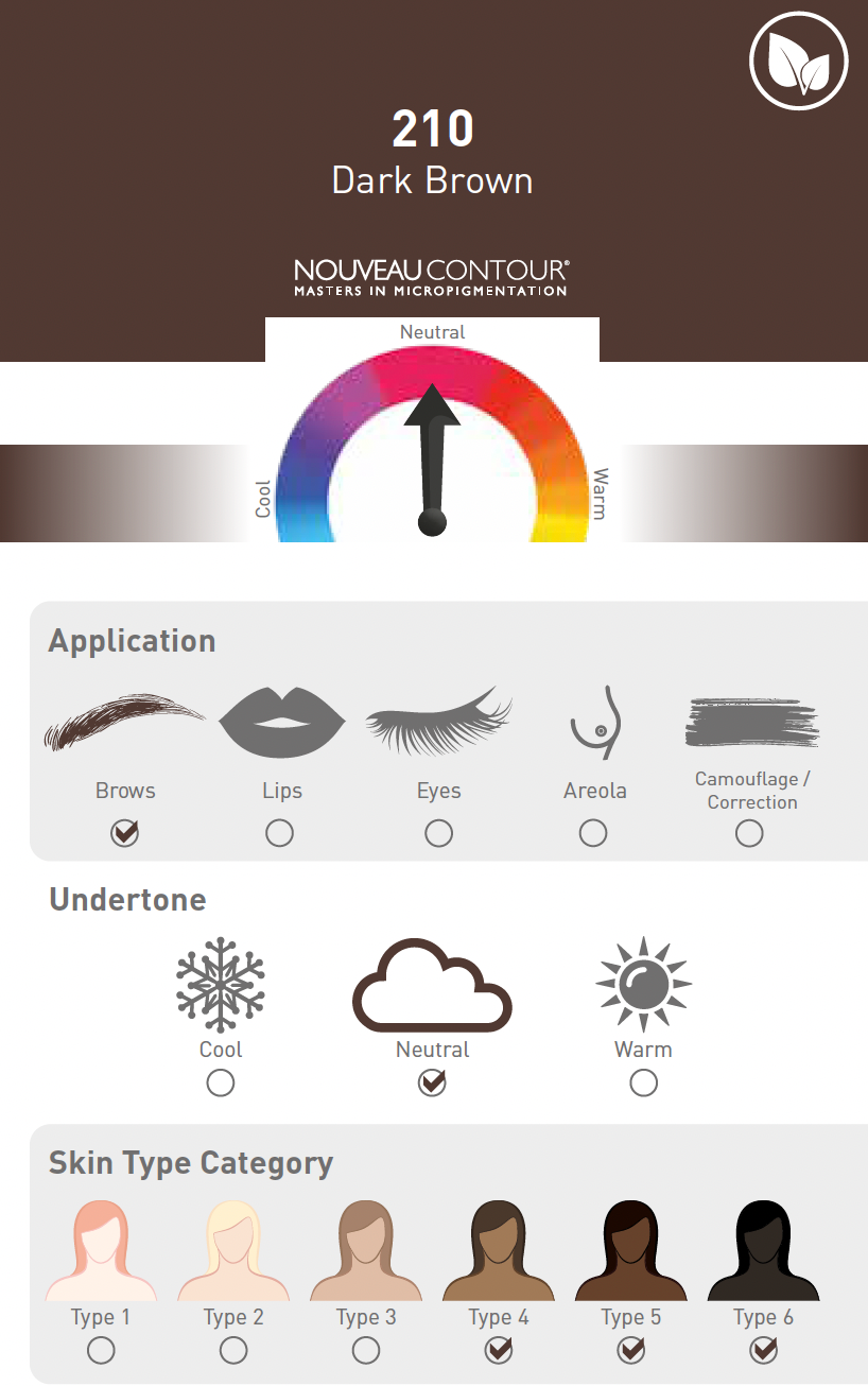 Eyebrow PMU Pigment Dark Brown is suitable with clients with brown hair and a dark skin. With this dark brown color you will create soft powder brows or very natural hairstrokes.