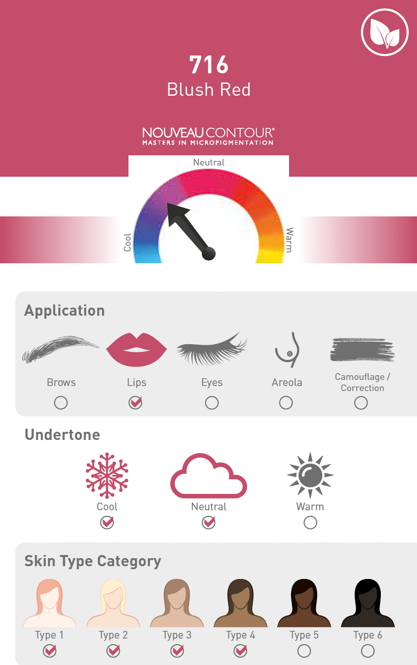 With Lip pigment 716 – Blush Red you’ll create very natural colored lips. This pigment is suitable for lighter skintypes. Use the color directly to the lips for beautiful results, or mix the pigment with one of our other lip pigments!
